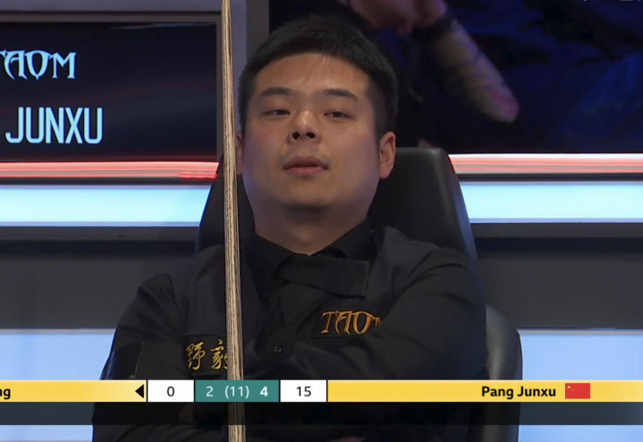 在这样的局面下,肖国栋及时调整了回来,连续2局完成单杆突破100,局分变为2-3。在第6局中,肖国栋长台打底角红球又是送出失误,庞俊旭获得大好局面,并成功胜出,4-2领先肖国栋。第7局肖国栋在被超分后,想做斯诺克逆转,但随着庞俊旭打进粉球终结本局。肖国栋的状态真是太糟糕了,运气也差,第8局中他完成单杆59分,但错失好局,白球摔袋后,庞俊旭上手进攻完成翻盘,肖国栋2-6被淘汰。这场比赛两人打了4个半小时,庞俊旭只有1次单杆60+,但失误少,最终淘汰了肖国栋。