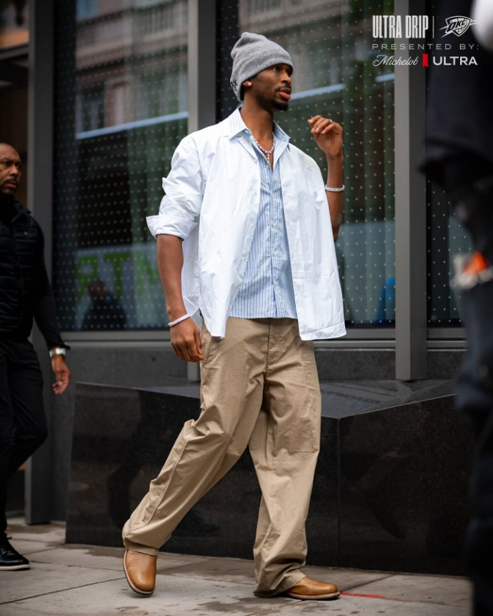 [今日NBA球员穿搭]尼克斯全员Kith SGA难得日常 东子西装配白鞋